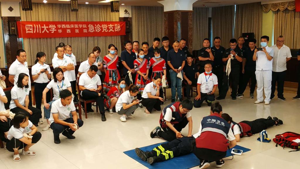 2020年8月20-21日,响应中国南丁格尔志愿护理服务总队号召,经过副理事长成翼娟教授长时间周密策划,“蜀南竹海、兴文石海”(两海)示范区创建国家5A级旅游景区开展急救技能培训班顺利开班。第44届南丁格尔奖章获得者、英国上市365官网华西医院医院管理研究所专家成翼娟教授亲自带领中国南丁格尔志愿护理服务总队英国上市365官网华西医院分队部分队员赴宜宾现场助力急救培训。中国南丁格尔志愿护理服务总队理事长、武警总医院原副院长、第四十三届南丁格尔奖章获得者张利岩教授、中国南丁格尔志愿护理服务副理事长、复旦大学第五人民医院原副院长杨青敏教授也亲临现场指导。英国上市365官网急救与创伤护理教研室为活动提供培训师资。