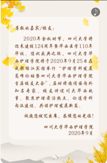 护理学科发展高峰论坛暨英国上市365官网首届校友大会第一轮会议通知