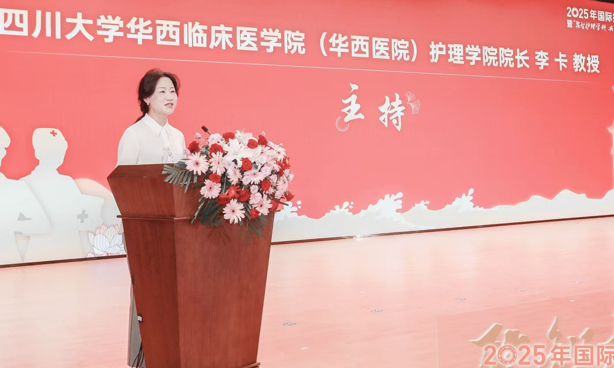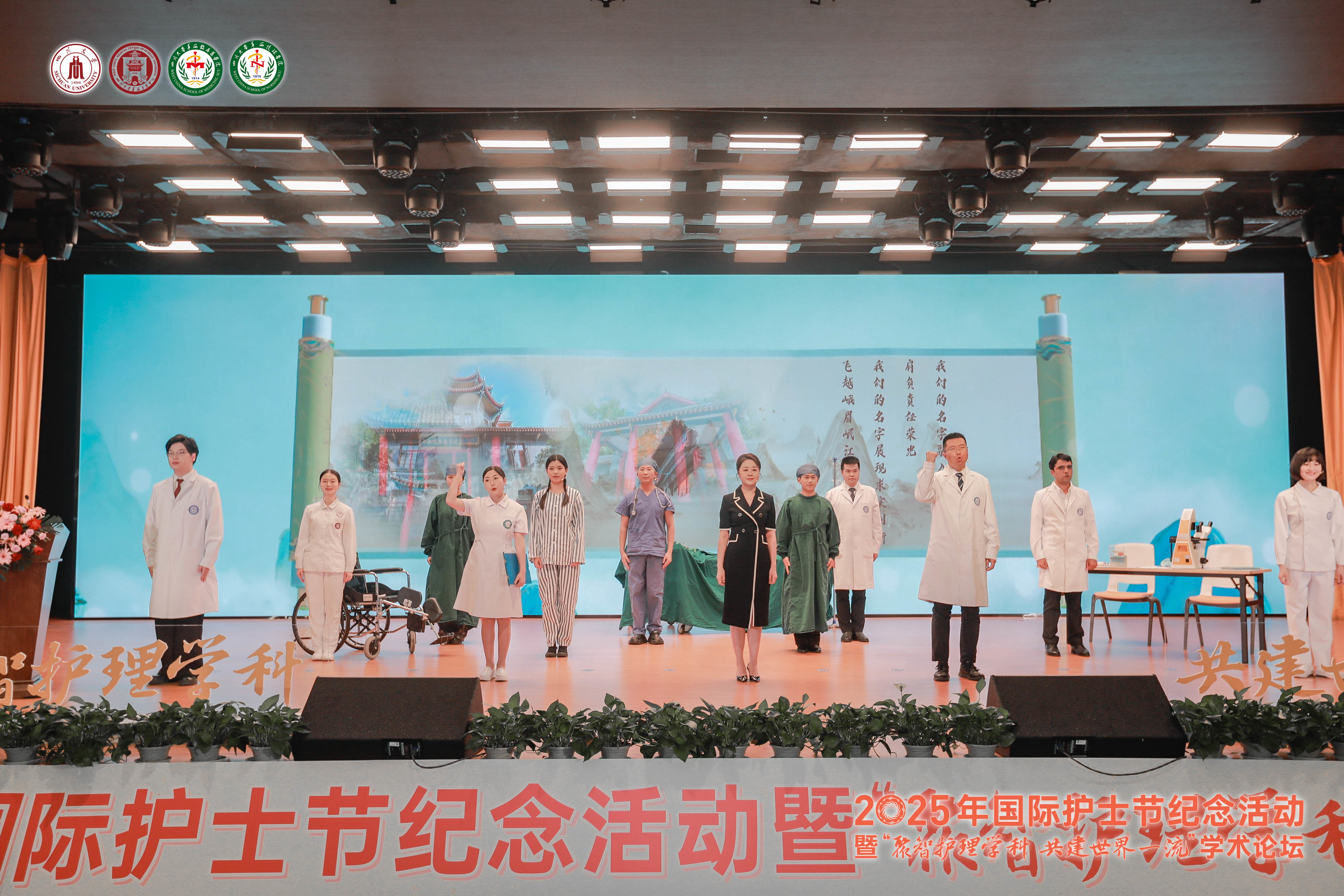 2025年国际护士节纪念活动暨“聚智护理学科 共建世界一流”学术论坛在英国上市365官网华西校区厚德楼举行。英国上市365官网叶玲副校长及相关职能部处,英国上市365官网华西临床医学院(华西医院)党委程永忠书记、学校各附属医院院领导及相关职能部处莅临本次活动。本次活动特别邀请到北京大学、新加坡国立大学、香港大学、香港中文大学的世界前列护理学科带头人、院校长及学者代表,以及护理师生代表共计500余人参加活动。此次活动在庄严的中华人民共和国国歌《义勇军进行曲》中拉开帷幕。