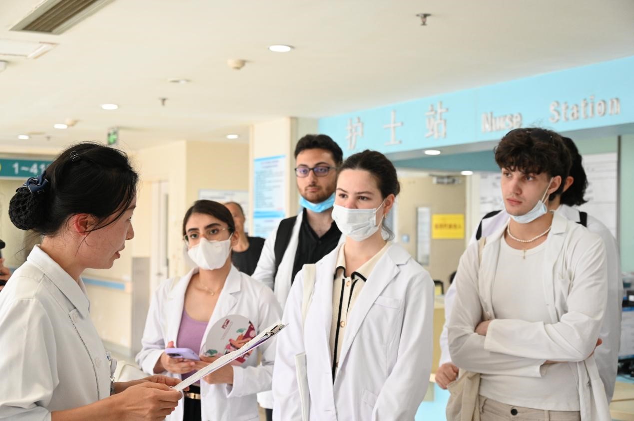 7月2日下午,365官网组织38名国际学生到呼吸与危重症医学科、心理卫生中心、门诊部等特色护理病房进行参观。