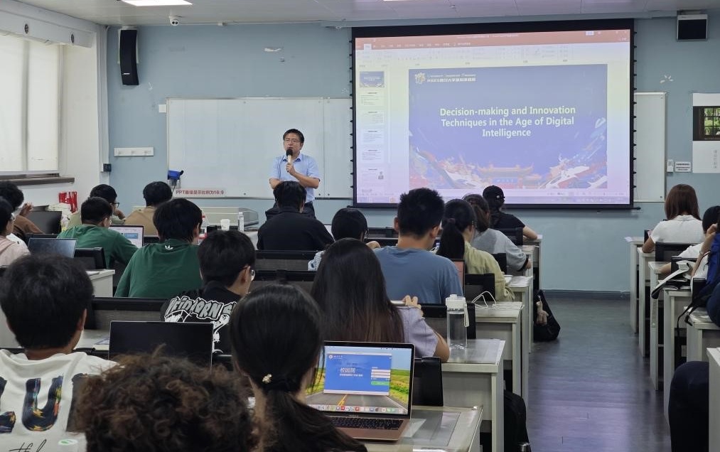 美国加利福利亚州立大学多明格斯山分校商学院Xun Xu副教授开设《Decision-making and Innovation Techniques in the Age of Digital Intelligence》课程,由谢小凤副教授共同负责。Xun Xu教授深入讲解了决策科学的基本理论与决策树等重要概念,结合可视化分析软件,引导同学们通过数据驱动的方法做出最佳决策,培养学生在数字智能时代中进行有效决策和创新的核心能力。