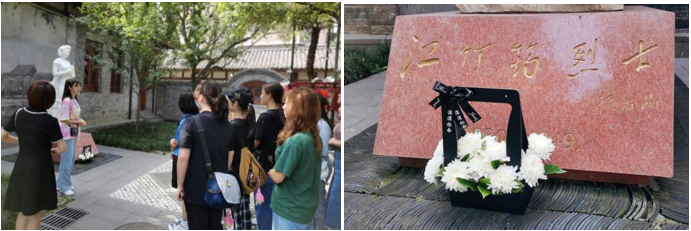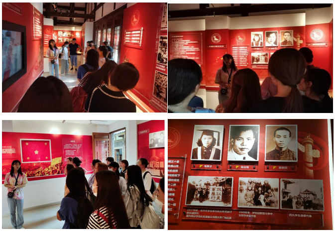 同学们进入江姐纪念馆中保存最为完好的民国建筑学习了解江竹筠同志的生平;同学们还了解到江竹筠同志在川大就读时还曾从植物系转入农业系,在自己努力学习的同时下,兼顾发展思想先进的同学和群众。