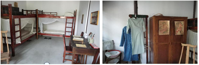同学们参观了民国时期的川大宿舍,了解当时大学生的学习状况,不同于以往在影视作品中的刻板形象,从衣架上的旗袍、衣柜上的海报都可以看出江姐在大学期间生活是丰富多彩的。同时,同学们对江竹筠同志一边进行学习一边完成党的地下任务表示高度敬意。