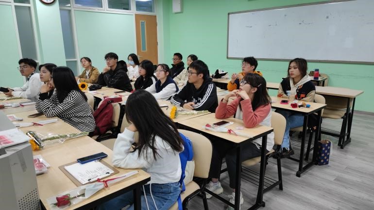 见面会前,班主任黄文姣老师提前为同学们准备了惊喜,充满朝气的向日葵和娇艳的玫瑰花与青葱岁月的少年少女十分相称。
