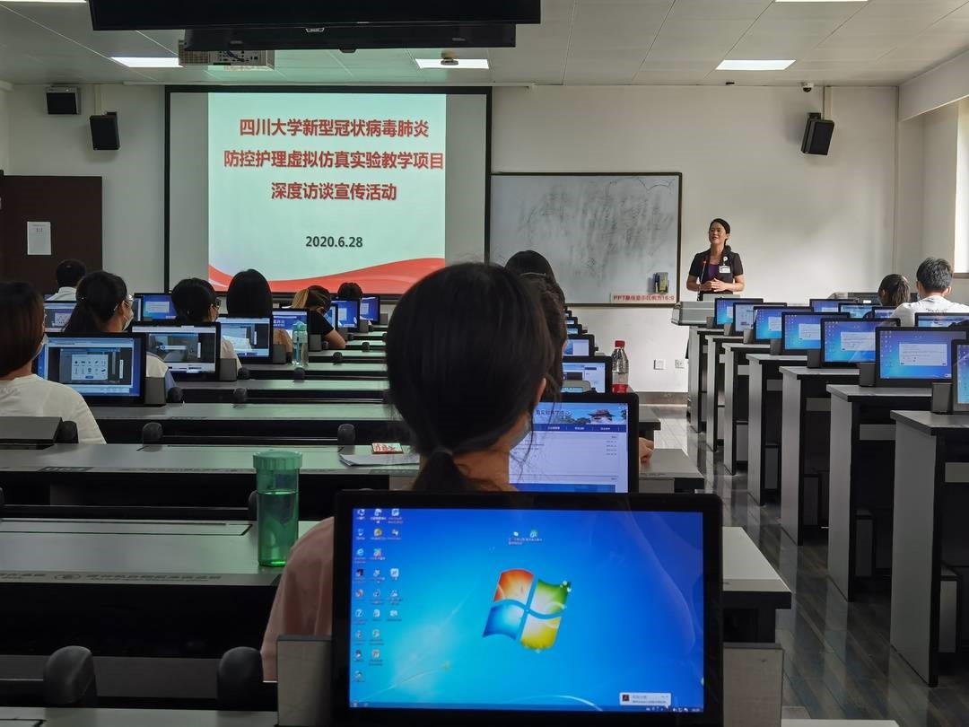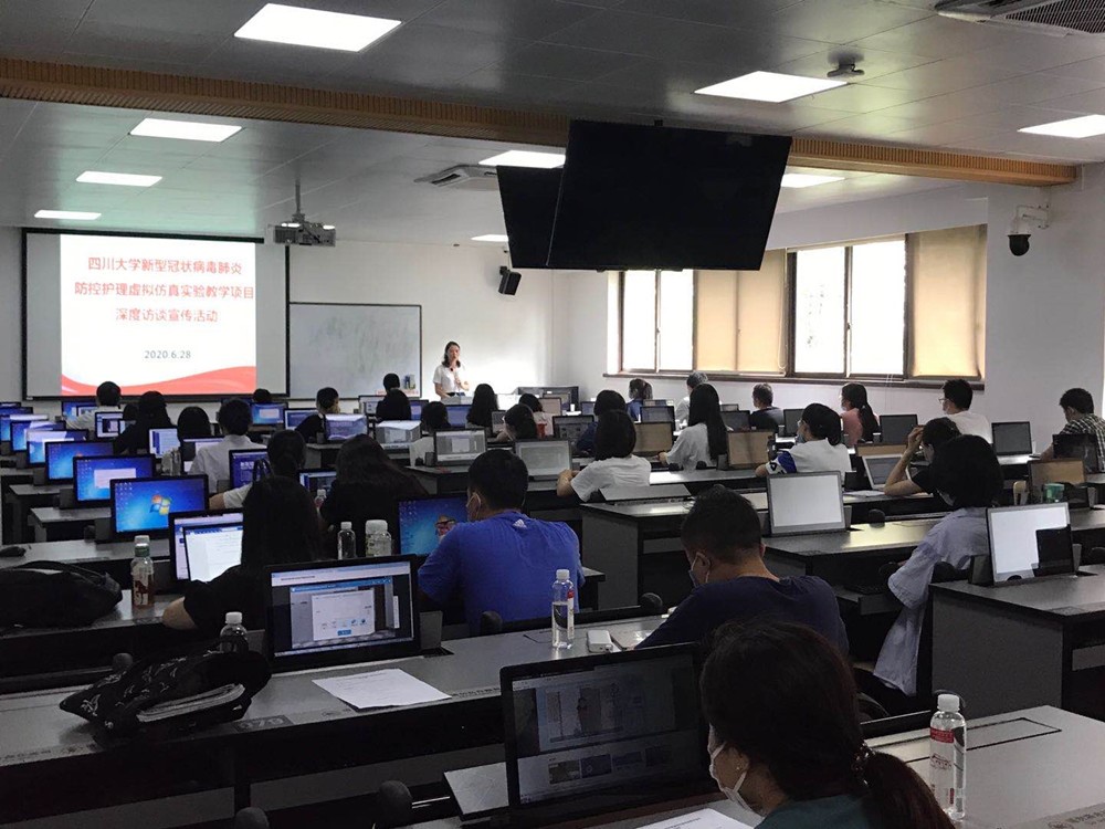 四川电视台以《川大新冠肺炎防护虚拟仿真实验教学项目今起对公众开放》为题,介绍了记者体验该项目的情况,称该项目画面感丰富,配音、动画及任务交流饱满充分。