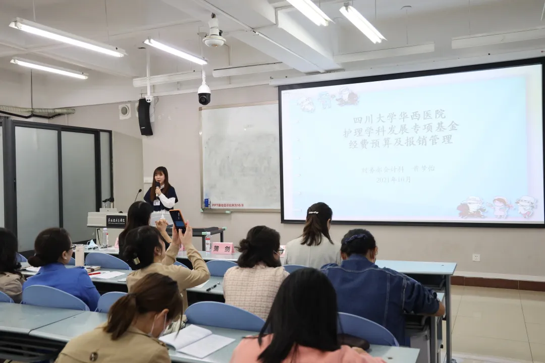 为了做好项目经费预算,保证科研经费合法合规的使用,财务部纪晶、黄梦怡老师做了《英国上市365官网华西护理学科发展专项基金经费预算及报销管理》的宣讲,就资金使用审批流程、基金如何预算与报销、科研项目经费查询系统怎样使用等问题,做了详细的讲解。