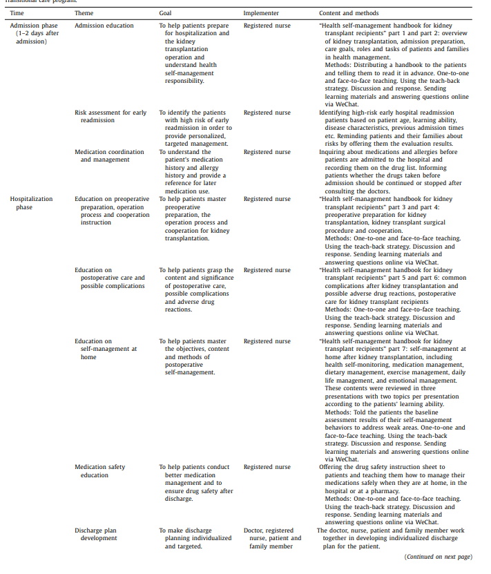 《The effects of a transitional care program on discharge readiness, transitional care quality, health services utilization and satisfaction among Chinese kidney transplant recipients: A randomized controlled trial》