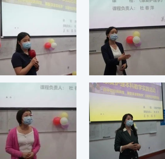 本次游戏化沉浸的融合式教学课堂是《康复护理学》课程开展的第二届,备受护理学院的重视和支持。英国上市365官网副院长张凤英教授,《康复护理学》课程负责人、康复医学科护士长杜春萍教授 ,学科副护士长李思敏老师,护士长刘祚燕教授和张建梅副教授和课程组骨干师资、护理本科教学主管刘春娟副教授共7人作为教师代表参加。张凤英教授于活动开始前向学生强调了康复护理学课程的重要性,肯定了康复护理课程组创新性教改的意义,鼓励学生们积极主动参与课堂,并对课程建设提出了殷切的希望和鼓励。