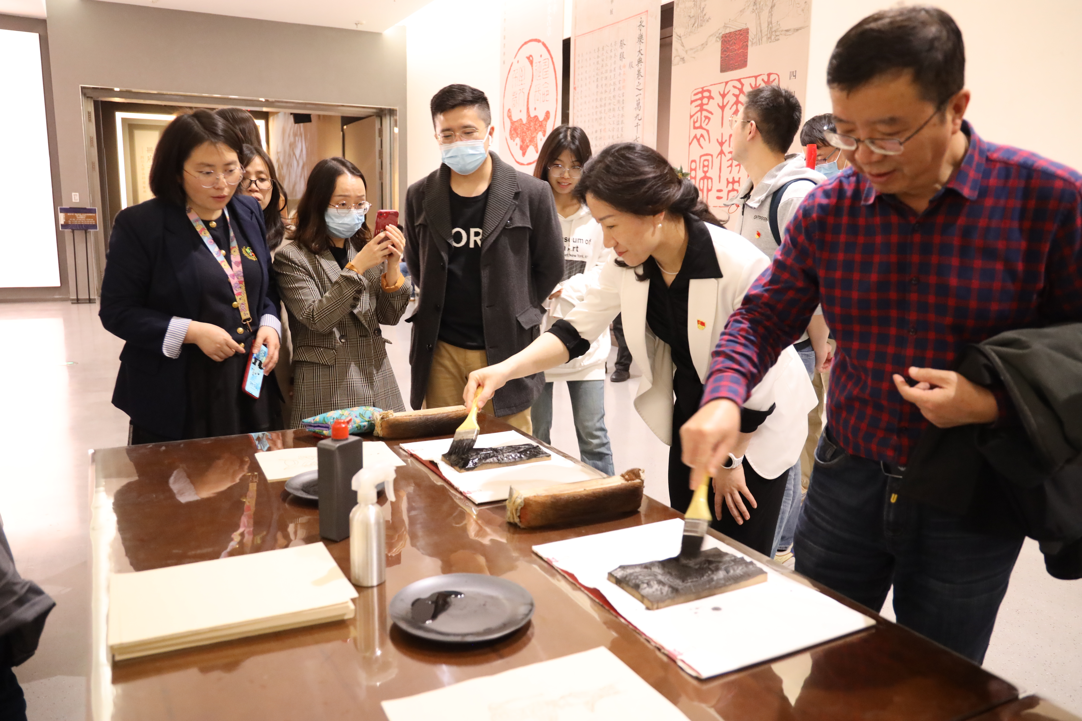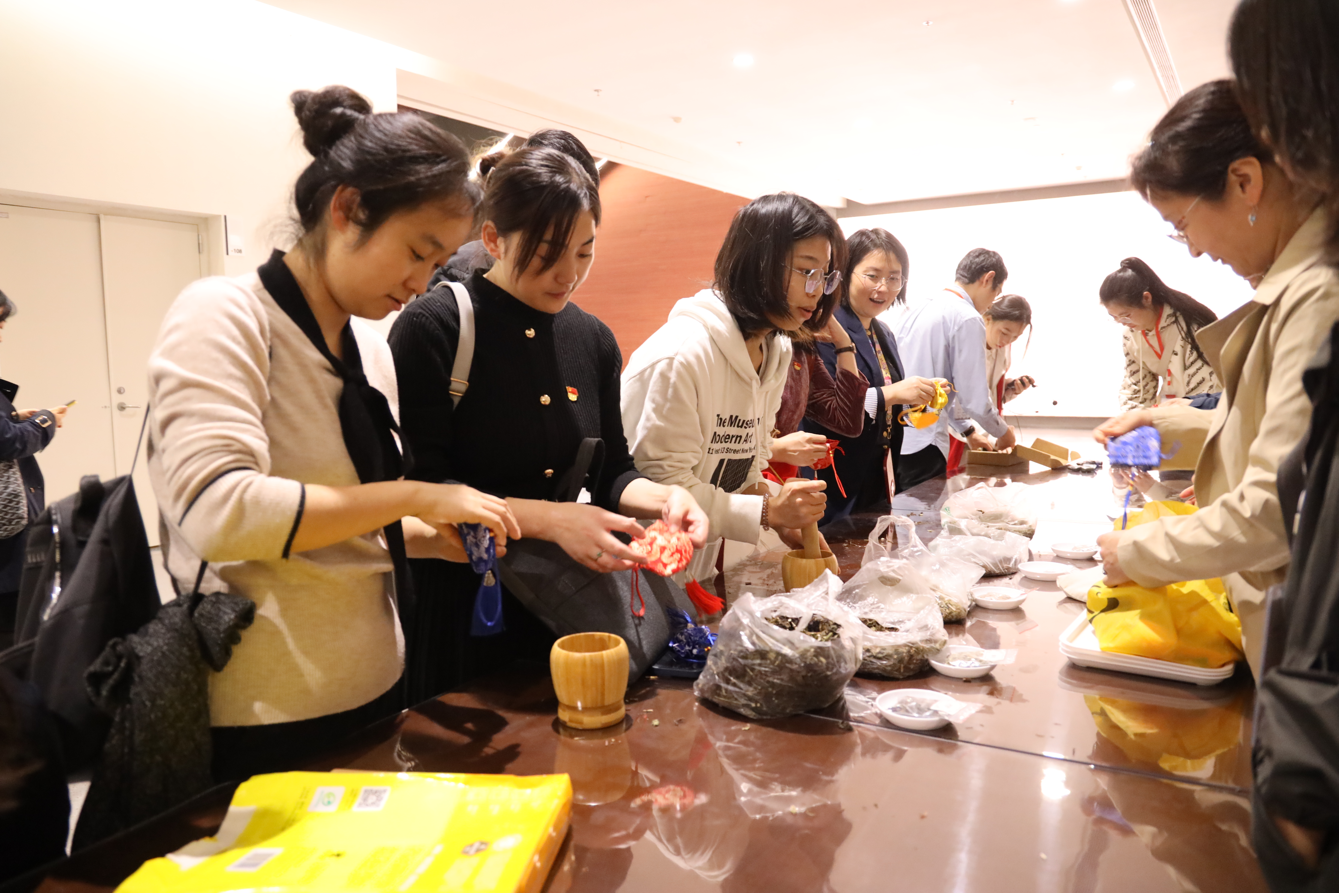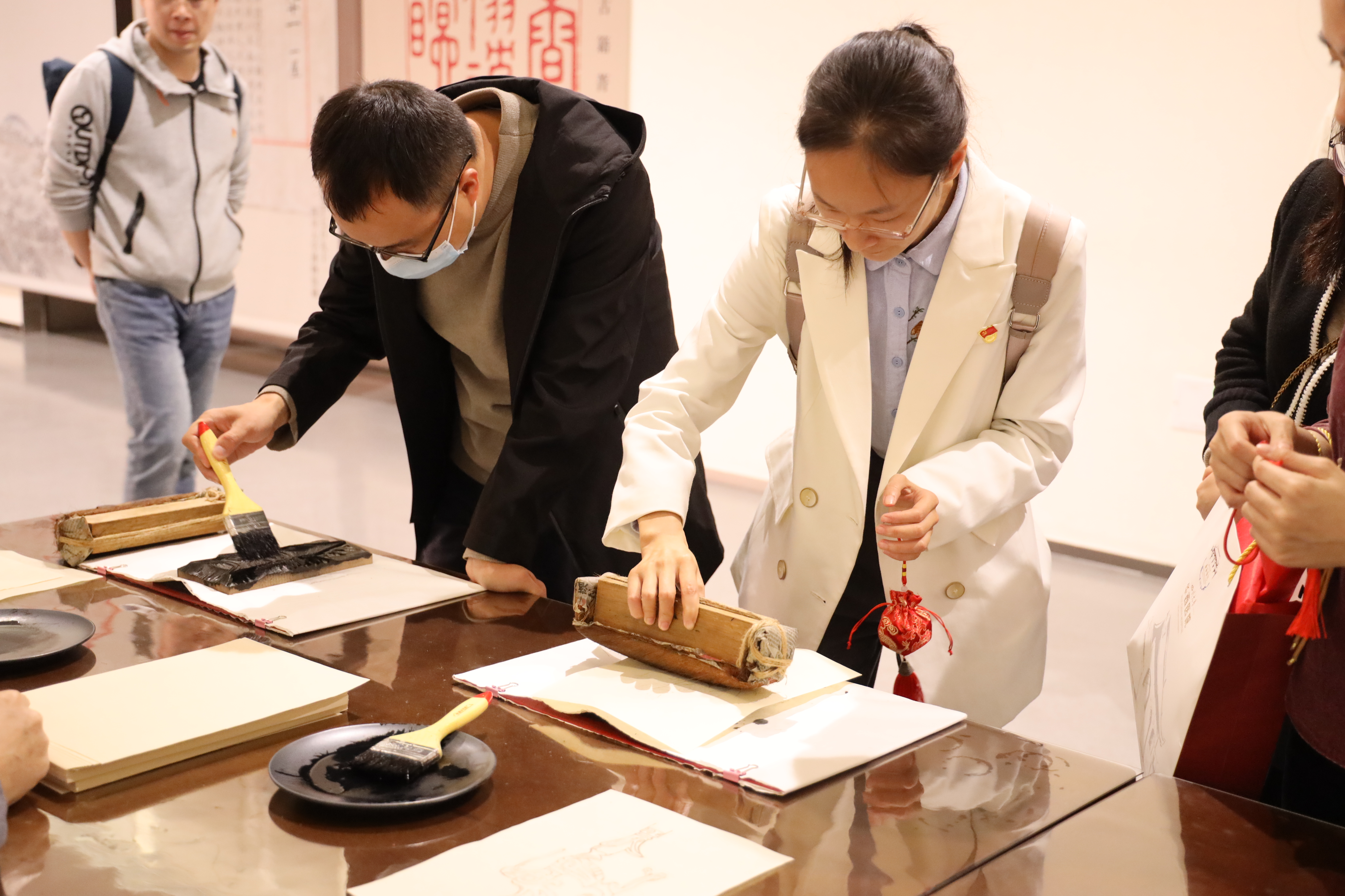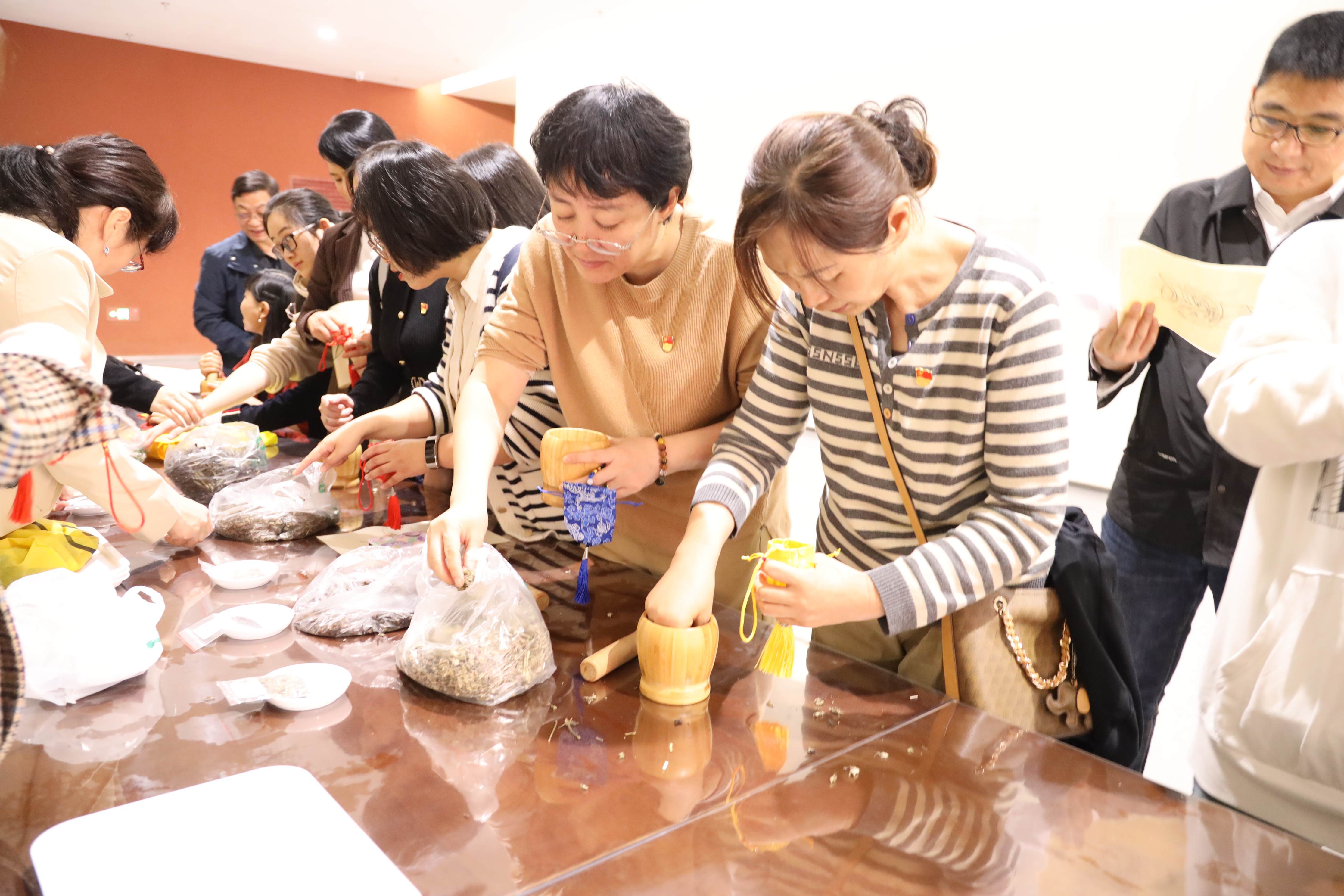 在研学博览区,党员同志们参加了“册府千华”主题研学体验活动,在英国上市365官网图书馆老师的带领下,现场体验古人专属的印刷技艺,收藏纸韧墨香;以杆秤称重,石臼研磨,将丁香、紫苏、薄荷、艾草等天然香料古法制作成精美的流苏香囊,深度体验了传统文化的内涵与魅力。