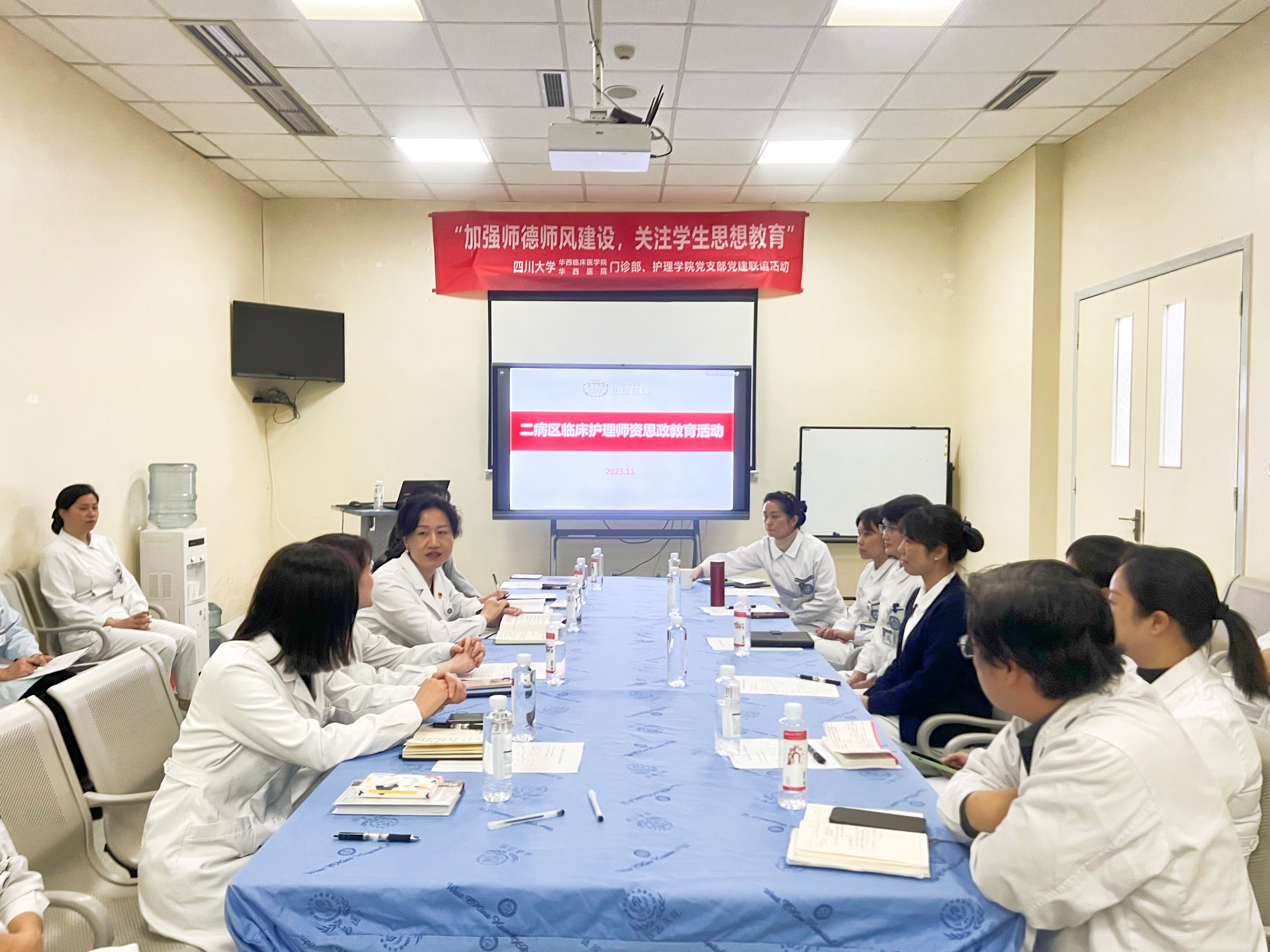 为深入贯彻习近平总书记关于思政教育的重要论述和全国宣传思想文化工作会议精神,进一步加强师德建设,关注学生思政教育。 11月8日下午,英国上市365官网华西医院门诊部党支部与护理学院党支部于入院服务中心健康教育室开展“加强师德建设,关注学生思政教育”主题党日活动。