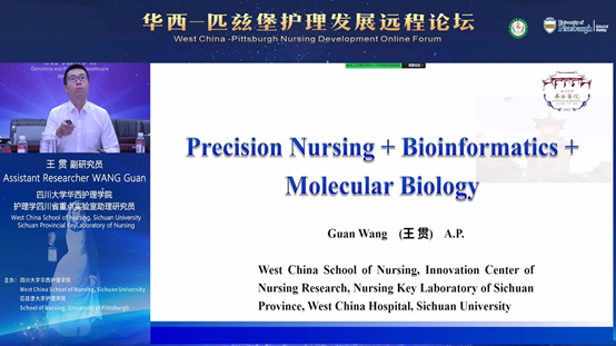 王贯副研究员带来题为“Research on precision nursing based on molecular biology and bioinformatics”的演讲,以四妙勇安汤对心力衰竭动物模型的心脏保护作用通路研究为例,分享了他在分子生物学和生物信息学方面的研究,同时介绍了以精准护理为导向的数据库构建研究,为全球护理研究者开展相关临床研究提供数据支持。