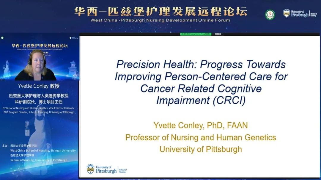 Yvette Conley 教授以“Precision Health: Progress Towards Improving Person-Centered Care for Cancer Related Cognitive Impairment”为题,详细讲述了基因组学和生物标志物在乳腺癌患者认知功能改变中的预测作用,为护理工作者提高临床护理质量提供了新的视角。