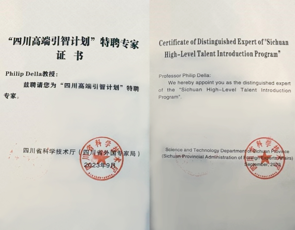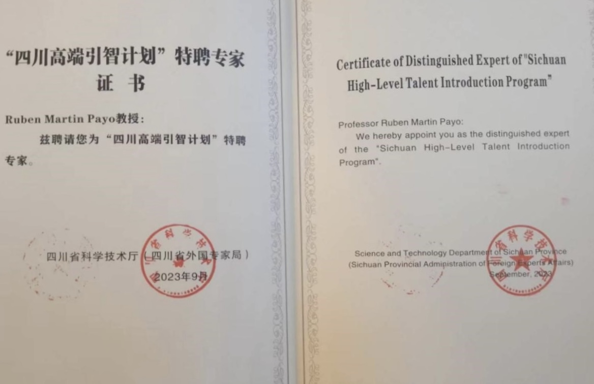 365官网两名外籍教授获聘“四川高端引智计划”特聘专家