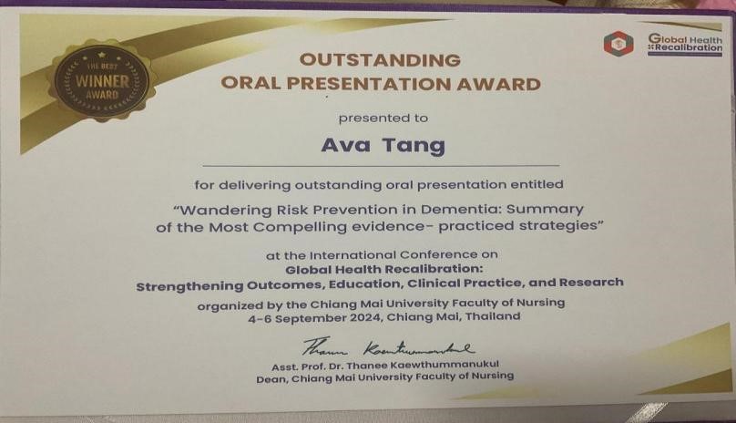 9月4日—6日,由泰国清迈大学护理学院主办的国际会议以“Global Health Recalibration 2024:Strengthening Outcomes, Education, Clinical Practice, and Research”为主题在泰国清迈顺利召开。该会议邀请了来自9所知名组织和高校的专家学者作主旨演讲,吸引了来自世界各地的500多名卫生专业人士和学者参会。365官网刘素珍教授带领2名护理学本科生(包括护理学与管理学双学位专业),4名硕士研究生和2名博士研究生参会,并做了口头汇报和壁报展示。其中22级护理学与管理学双学位专业本科生唐宇在口头汇报中获得“Outstanding Oral Presentation Award”。