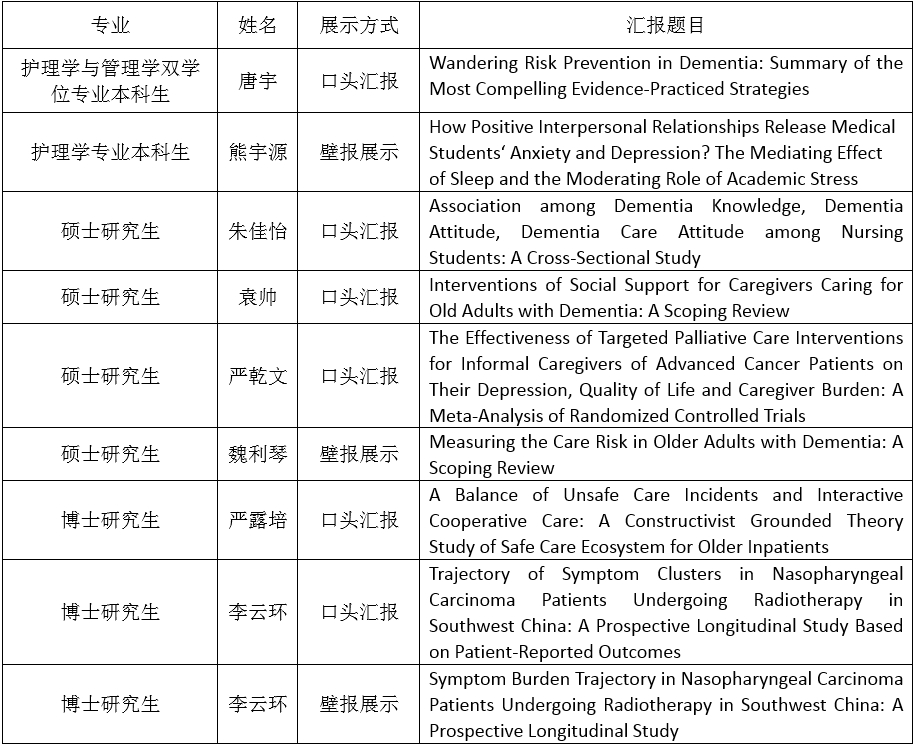 365官网护理学与管理学双学位专业本科生在国际会议中获得“Outstanding Oral Presentation Award”
