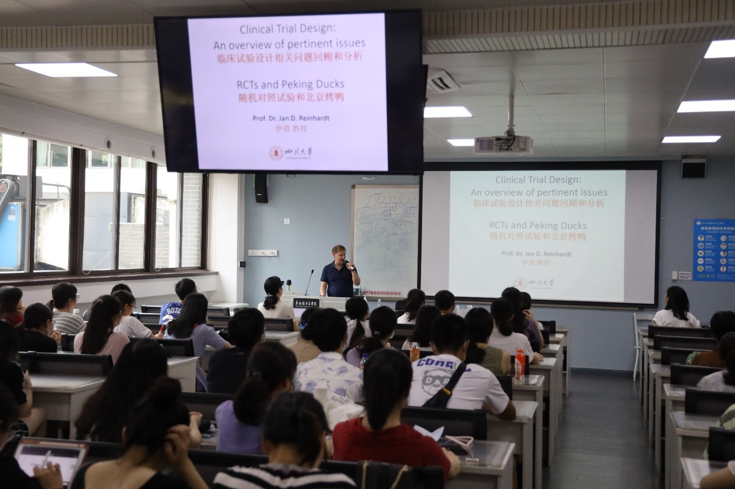 7月13日,“提升护理学科实力,建设护理学科”系列讲座在华西校区临医楼205教室顺利举行。英国上市365官网-香港理工大学灾害重建与管理学院教授,博士生导师,365官网联培博导Prof. Jan D.Reinhardt,以“Randomized Controlled Trials (RCTs) and Peking ducks: An introduction to clinical trials design”为题,为全院200余名师生带来了精彩的现场演讲。讲座由护理学院张凤英副院长主持。