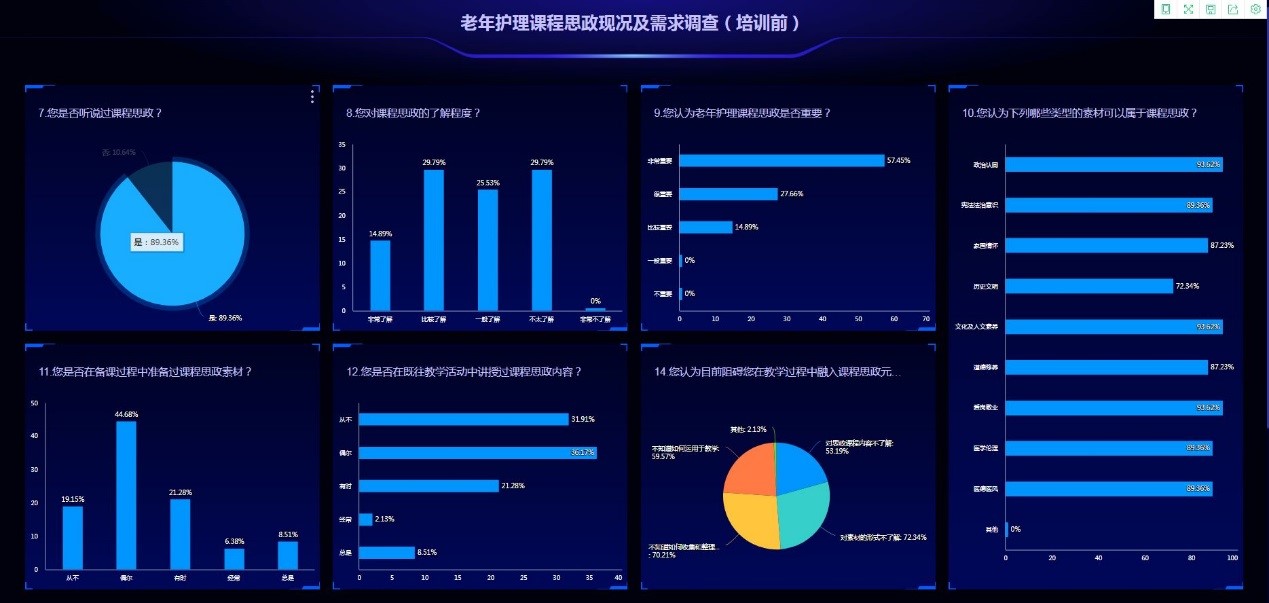 为响应国家这一号召,积极推进课程思政建设,老年护理学教研室/干部特需医疗中心高度重视专业课思政教育改革,构建了老年护理学课程/干部特需医疗中心思政建设项目,通过培训前需求调查、集中培训和培训后效果评估三步走措施,提升全体老师对课程思政的认识和理解,为思政元素“滴灌式”融入专业教育打好坚实基础。