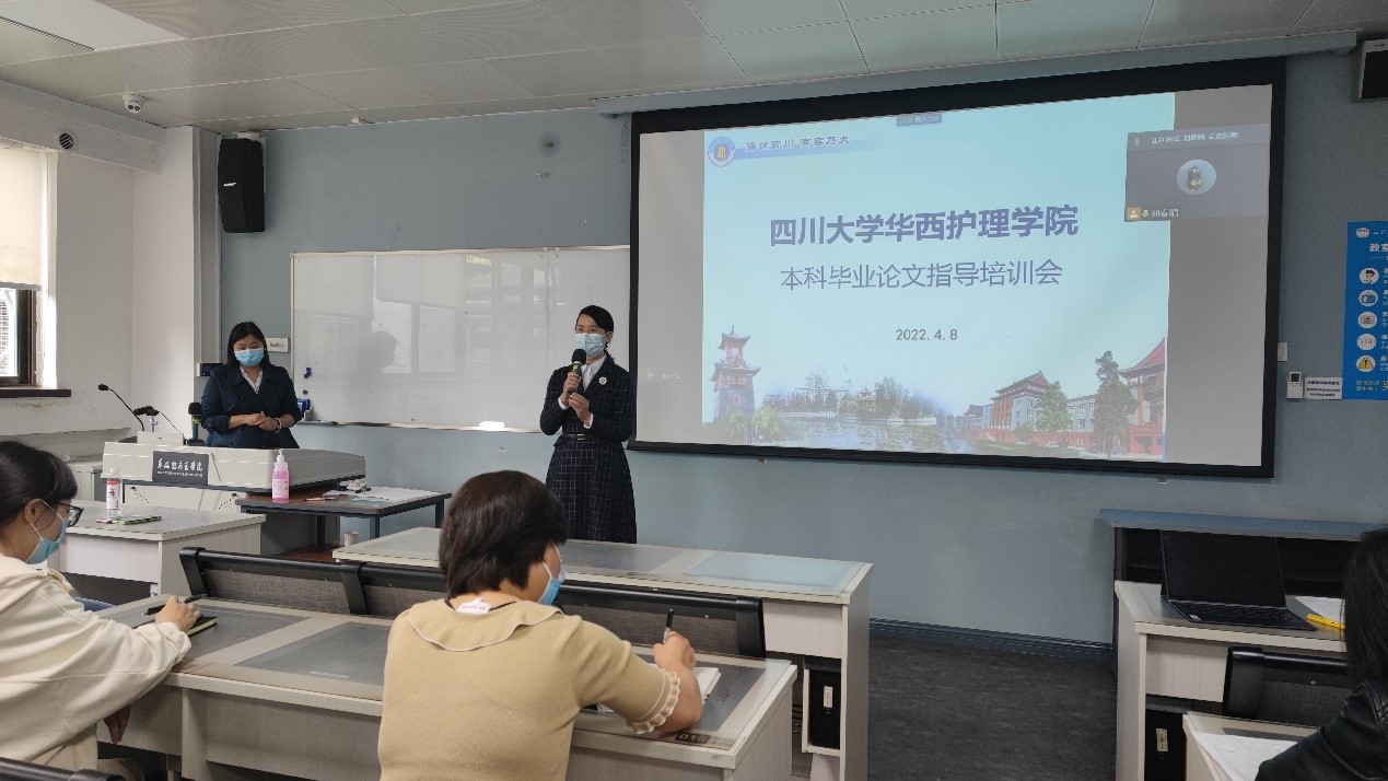 根据学校、临床医学院2022届本科生毕业论文(设计)工作进度安排,为提高护理本科生毕业论文质量,护理学院于4月8日下午4时,在厚德楼209教室举行了2022届护理本科毕业论文指导教师及学生培训会。本次培训会采用线下+线上混合模式进行,近150位护理本科师生参加了此次培训会。会议由护理学院刘春娟副教授主持。