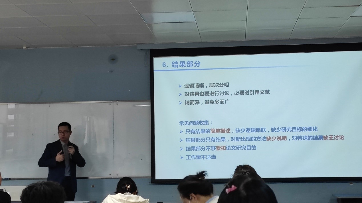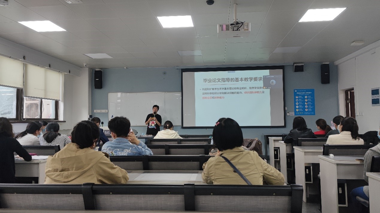 妇产科护理学教研室主任任建华副教授分享了本科生毕业论文撰写与指导要点,任老师首先强调了本科生毕业论文指导与撰写是实现人才培养目标的重要教学环节,培养学生去探求真理,强化学生的社会意识,指导学生进行基本科学研究基本训练,提高学生的实践能力和综合素质。随后,任老师从毕业论文指导的基本教学要求,毕业论文(设计)的类型要求,毕业论文(设计)指导老师要求/职责以及评分标准进行了详细的解读与阐述,最后,任老师结合实际案例就毕业论文写作与指导技巧进行了分享。接着,华西护理创新研究中心王贯副研究员结合论文撰写的过程一一向同学和指导老师分享了写作的要点以及剖析了撰写过程中的常见问题,生动形象地分享了毕业论文撰写技巧,此外,王老师还以自身论文撰写案例向指导老师们分享了如何高效的指导修改毕业论文。两位老师的精彩分享赢得了与会老师和学生的一致好评,纷纷表示受益匪浅。
