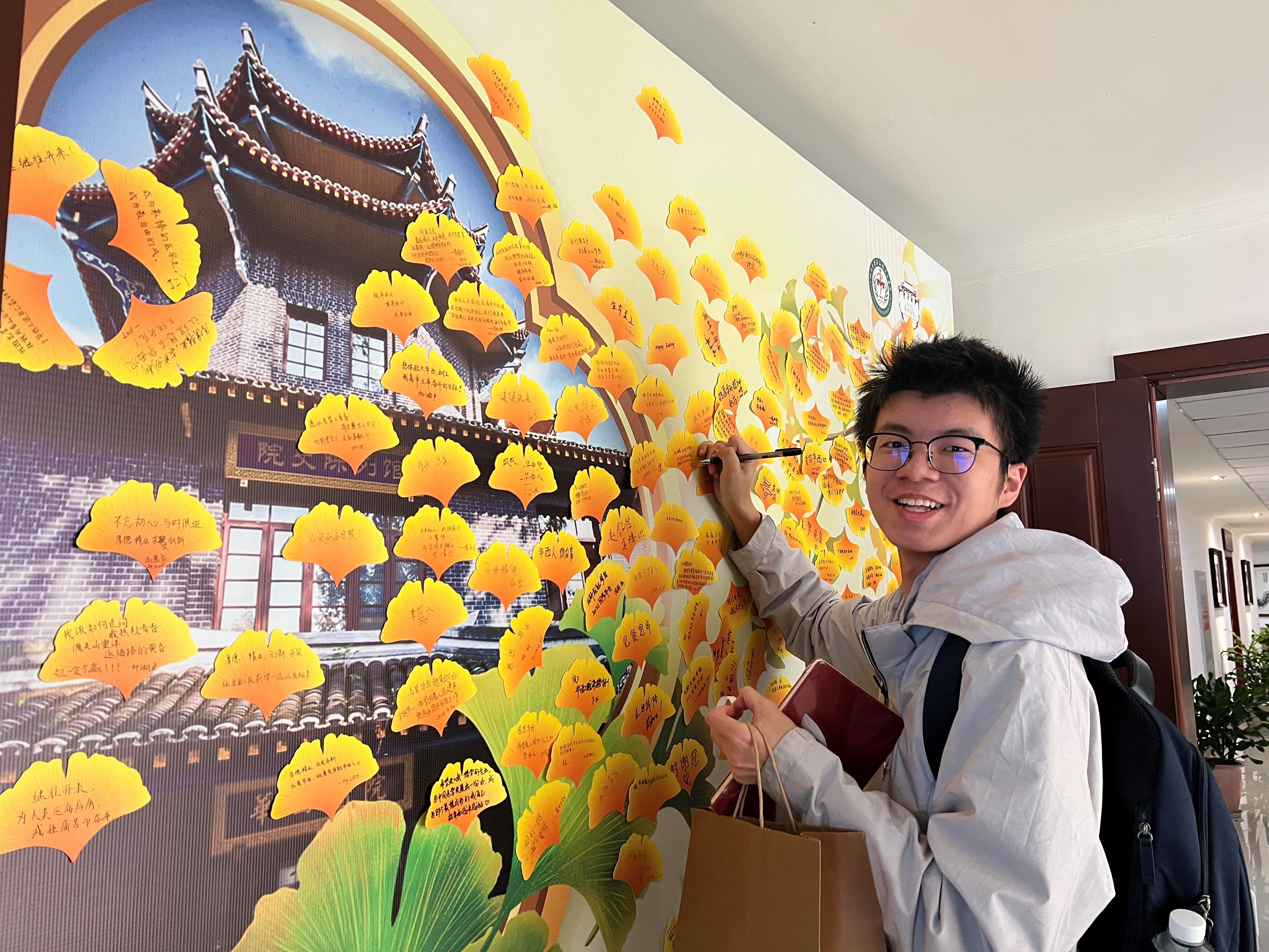 参观结束后,成教授让同学们在银杏叶上写下对未来的美好期许,并贴在院史馆的纪念墙上。那些金黄的银杏叶片,承载着每位护理学子对未来的希冀和对护理事业的热忱,诉说着一代新护理人未来的理想抱负,将华西精神与南丁格尔精神传承发扬。