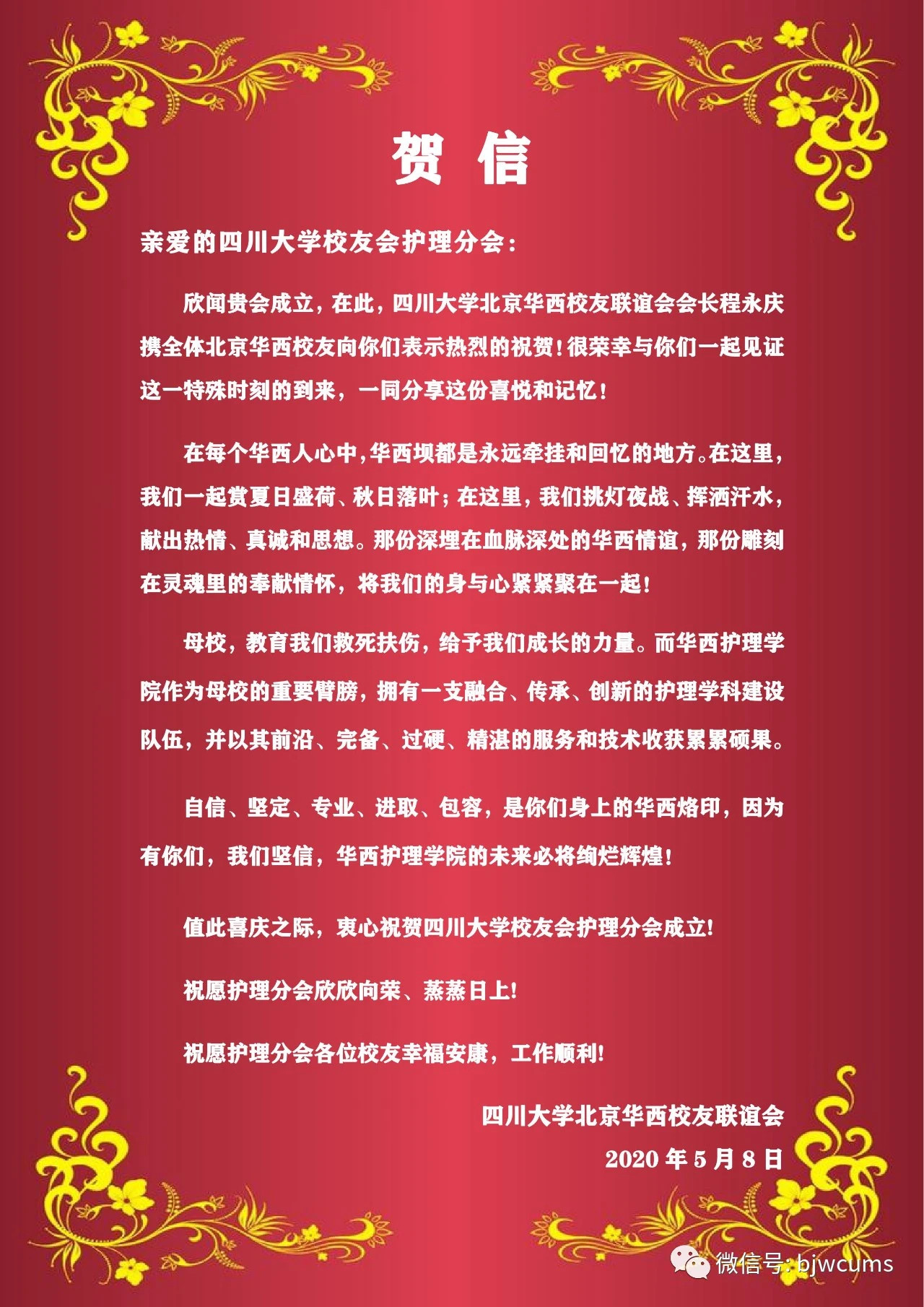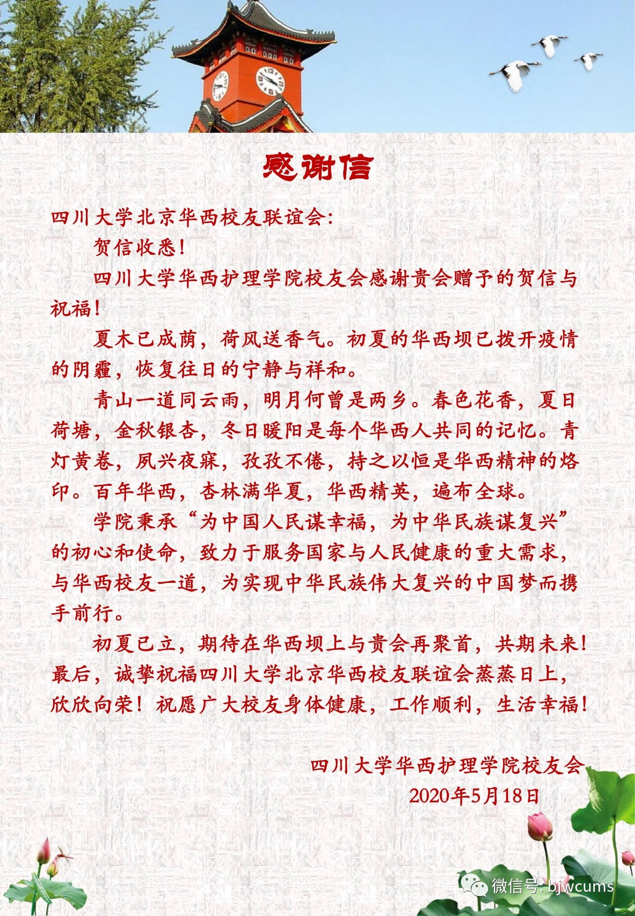 2020年4月30日,英国上市365官网校友总会批复成立英国上市365官网校友会,英国上市365官网北京华西校友联谊会代表在京校友于5月8日发去贺信;5月18日,北京华西校友联谊会收到英国上市365官网校友会发回的感谢信。