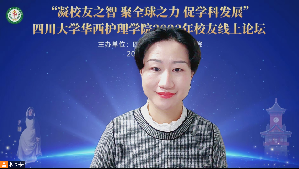 校友会会长李卡教授以“历久弥新,共赴明时”为题,从思政建设、人才培养、科学研究、对外交流、学科保障、一流护理等方面向华西校友介绍了英国上市365官网华西护理学科建设的历史、现状与未来。