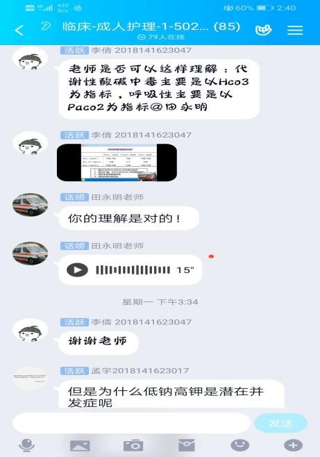 护理学院为老师们线上授课做了大量的后勤保障工作,特别借用了老八教315教室,尽可能为老师们创造良好的上课环境。开学第一天,护理学院、临床医学院教务部领导、课程负责人、课程秘书等都到达授课教室,为教师线上授课保驾护航。虽然身处全国不同地方,但老师和同学们的学习热情不减!助教提前发放上课流程至QQ群,同学们准时上课签到,助教授课全程在线,为授课教师和同学服务。同学们在QQ群里与老师热烈讨论,课堂氛围融洽。从课后小测的情况看,同学们对知识的掌握非常好!