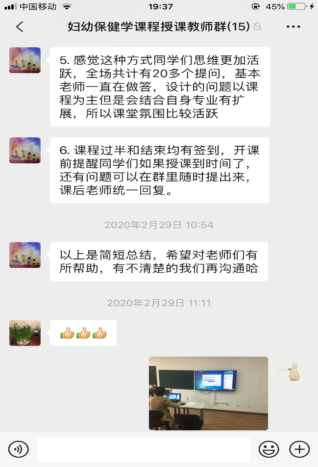 为了保障教学秩序,确保教学工作顺利进行,任建华副教授通过进入QQ群旁听的方式开展督学工作。三门课程均采用了课前、课后签到,计入平时成绩,以督促学生集中精力认真学习,避免“开小差”。同时在录课的过程中,教师采用实物模型,方便同学们理解。课堂上,同学们思维活跃,积极提问,老师语音回答,方便快捷,详细生动,得到了学生的一致好评。