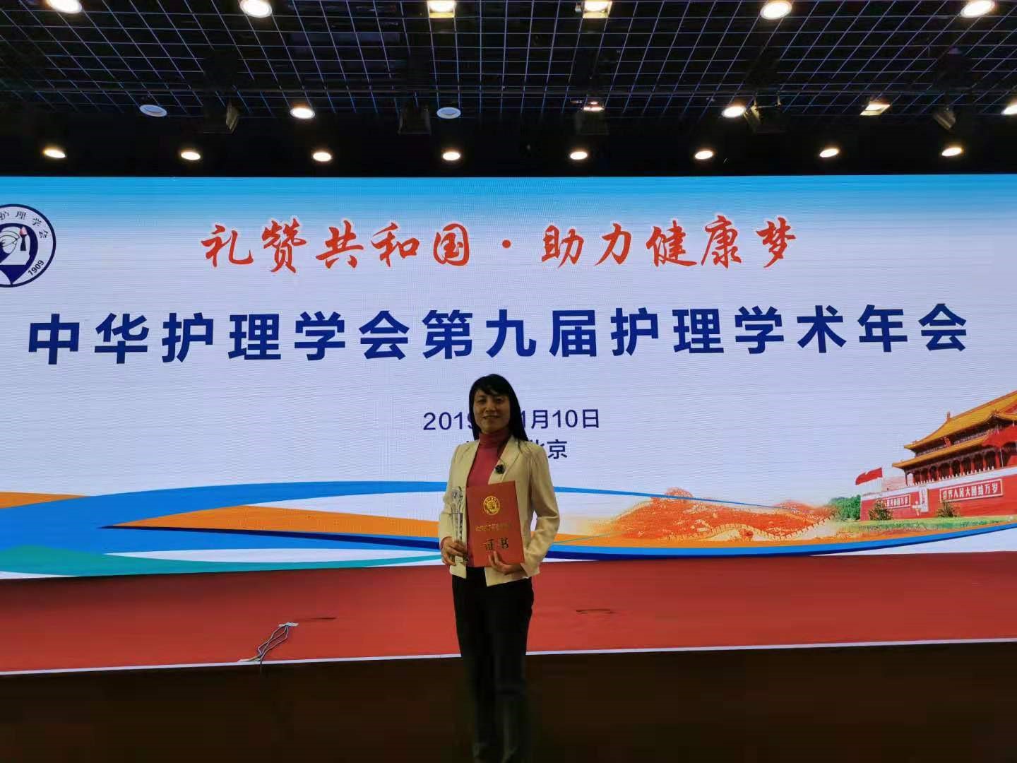 2019年11月10日以“礼赞共和国·助力健康梦”为主题的中华护理学会学术年会暨第六届中国护理学会科技奖颁奖大会在北京国际会议中心隆重举行。来自全国千余名护理工作者参加了本次盛会。365官网博士生导师罗碧如教授主持研究的课题《基...