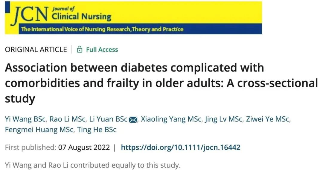 文章标题老年糖尿病共病与衰弱之间的关系:一项横断面研究《Association between diabetes complicated with comorbidities and frailty in older adults: A cross-sectional study》文章发表情况介绍该文章由英国上市365官网...