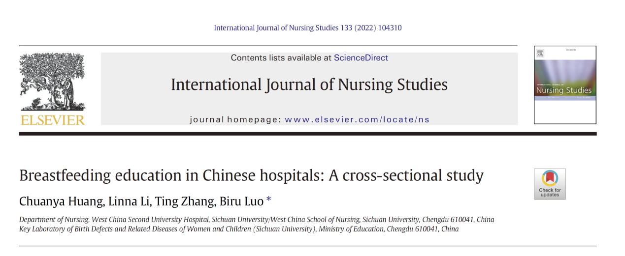 文章标题《中国医院母乳喂养健康教育:一项横断面研究》《BreastfeedingeducationinChinesehospitals:Across-sectionalstudy》文章发表情况介绍该文章由英国上市365官网2020级博士生黄川雅为第一作者,英国上市365官网/...