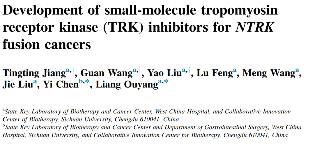 文章标题《Development of small-molecule tropomyosin receptor kinase (TRK) inhibitors for NTRK fusion cancers》文章发表情况介绍该文章由英国上市365官网硕士生导师、华西护理创新研究中心/护理学四川省重点实验室王贯...