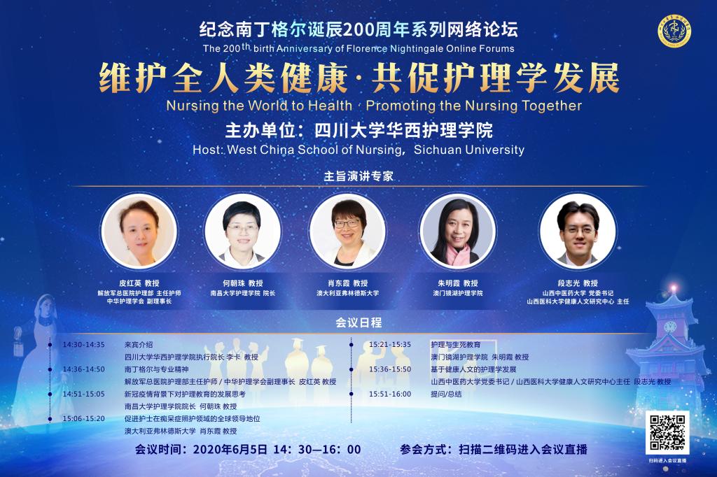 为纪念南丁格尔诞辰200周年,持续探索护理学科建设与发展,护理学院于5月12日下午在5G远程会议中心举办 “维护全人类健康,共促护理学发展”网络论坛。北京大学护理学院院长尚少梅教授、北京协和医学院护理学院刘华平教授、香港中...